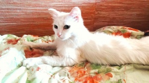 Белоснежная кошечка Соня ждет понимающих хозяев