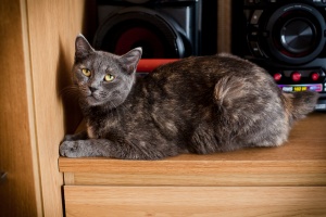 На руки не лезет и в целом ненавязчива, но очень отзывчива на ласку, с удовольствием подставляет почесать пузо. Встречает-провожает. За играми замечена не была, гонками по квартире не увлекается, в постель не лезет, но по столам ходит, любит высокие места. Горшок без проблем, приучена к сушке и когтеточке. Стерилизована.