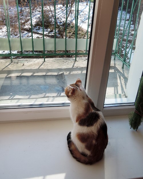 Кошке нашли-таки передержку, обработали от паразитов. Идет период "назад к домашнему очагу". Кошка уже совсем доверяет своей спасительнице Елене, на ласку очень ответная - и мурчать умеет, и ластиться, не агрессивна к аборигенным кошкам. Признала лоток с комкующимся наполнителем.