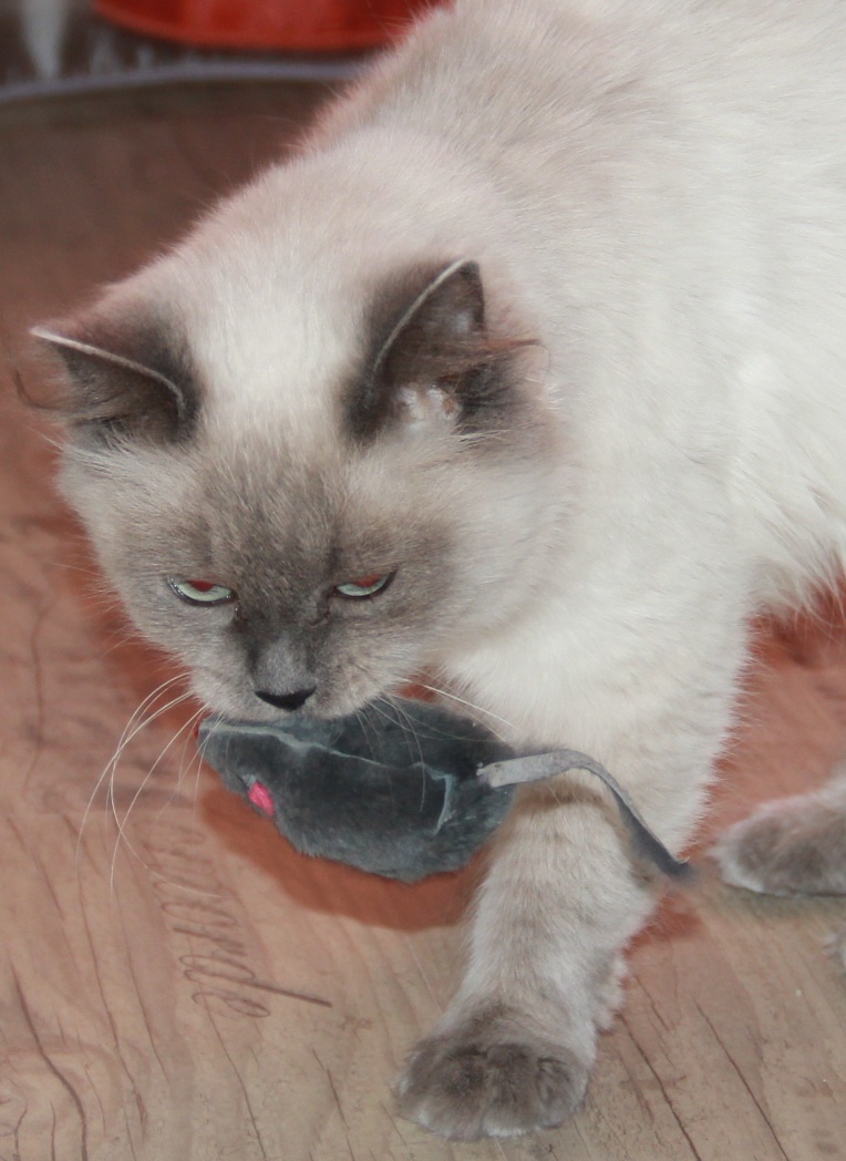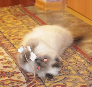 Олеся очень любит играть с игрушечными мышками. Настоящий хищник!
