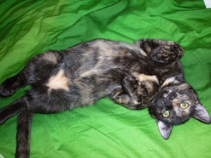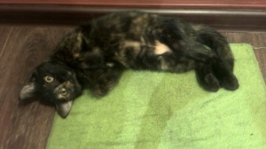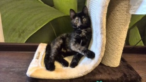 Сейчас это активный и веселый ребенок, очень ласковая, любит мурлыкать. С другими животными легко находит общий язык (сейчас живет с кошками и собакой).