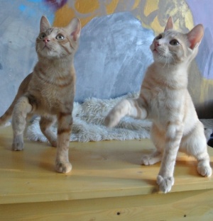 Недоверчиво оносится к новым людям. С любящим владельцем раскован, весел, игрив. Любит разваливаться на ручках кверху брюхом и тарахтеть, прищуривая глазки). Котёнок очень смешной, вызывает массу положительных эмоций, эдакий спортсмен-акробат)