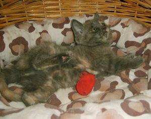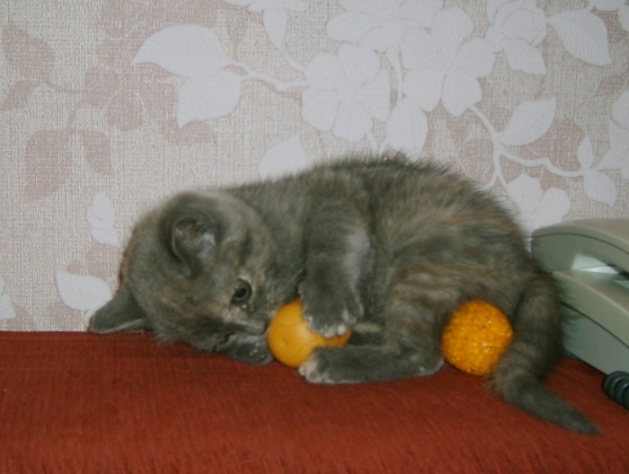 Что имеем: девочка, месяца 2, кушает сама прекрасно и в лоточек пошла без промахов с первого раза. Игривая и боевая малышка, в обиду себя не даст. Ну и выбражуля и ласкуша, как и все девчонки.
