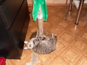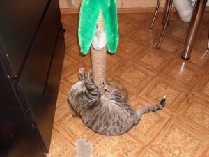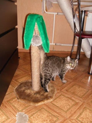 Муся освоила когтеточку-пальму. С удовольствием точит об неё коготки, мебель не портит. Воспитанная кошечка