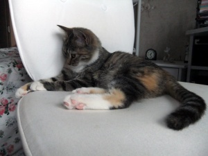 Девица каждый день развлекается невозможными прыжками, бегалками сама-с-собой и догонялками всех подряд. Очень ждет своих хозяев