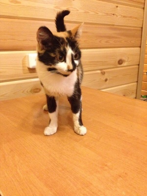 Трехцветная красавица-кошечка родила 4 месяца назад славных котят, остались 2: черно-белый озорной мальчик и рыженькая девочка-милашка:) кушают все, мама очень заботится о них:)