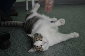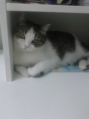 Тиффи - удивительно милая стала, переехала на другую передержку, и (О, Чудо!) - стала дружить и играть с кошками... адаптировалась, детка...)
