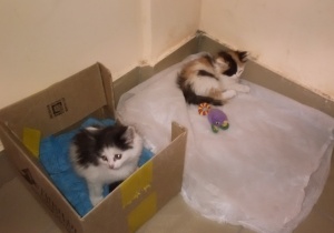Все добрый день! Нам в подъезд подбросили коробку, котятам около месяца, совсем еще малютки. Так жалобно пищат, сердце кровью обливается. Чистенькие, кушают что им приносят. Поставила им лоток - сразу поняли что к чему.