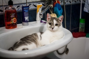 Томми, 1,8 года. Большой и добрый балбес с нежной душой ребёнка. Любит забираться на ручки, обнимает, смотрит снизу вверх - дитё дитём. Безобидный и беззащитный совершенно. Активный, игривый. Чужих боится, прячется.