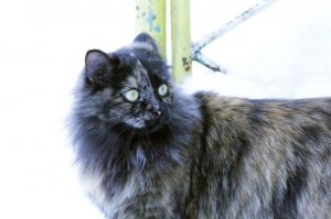 Представляю вашему вниманию очень красивую и ласковую кошечку Соню. Ее днем запускают в магазин, а на ночь выводят на улицу. Ночует Соня в подвале.
