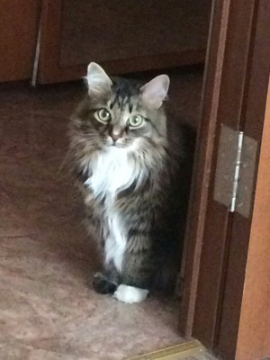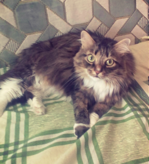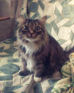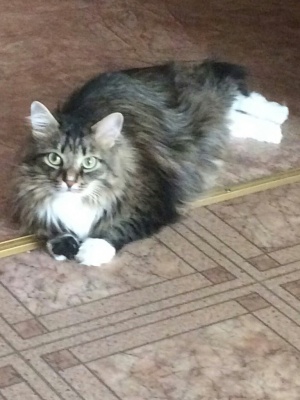 Муся обладает независимым характером и роскошной,полосатой шубкой,которой позавидует любая девушка, как истинная кошка-живет сама по себе,очень храбрая дама-ее не испугать ни пылесосом,ни собакой,петь песенки или попросту мяукать не любит,но если будете ее холить и лелеять,то возможно она порадует вас своим голоском.