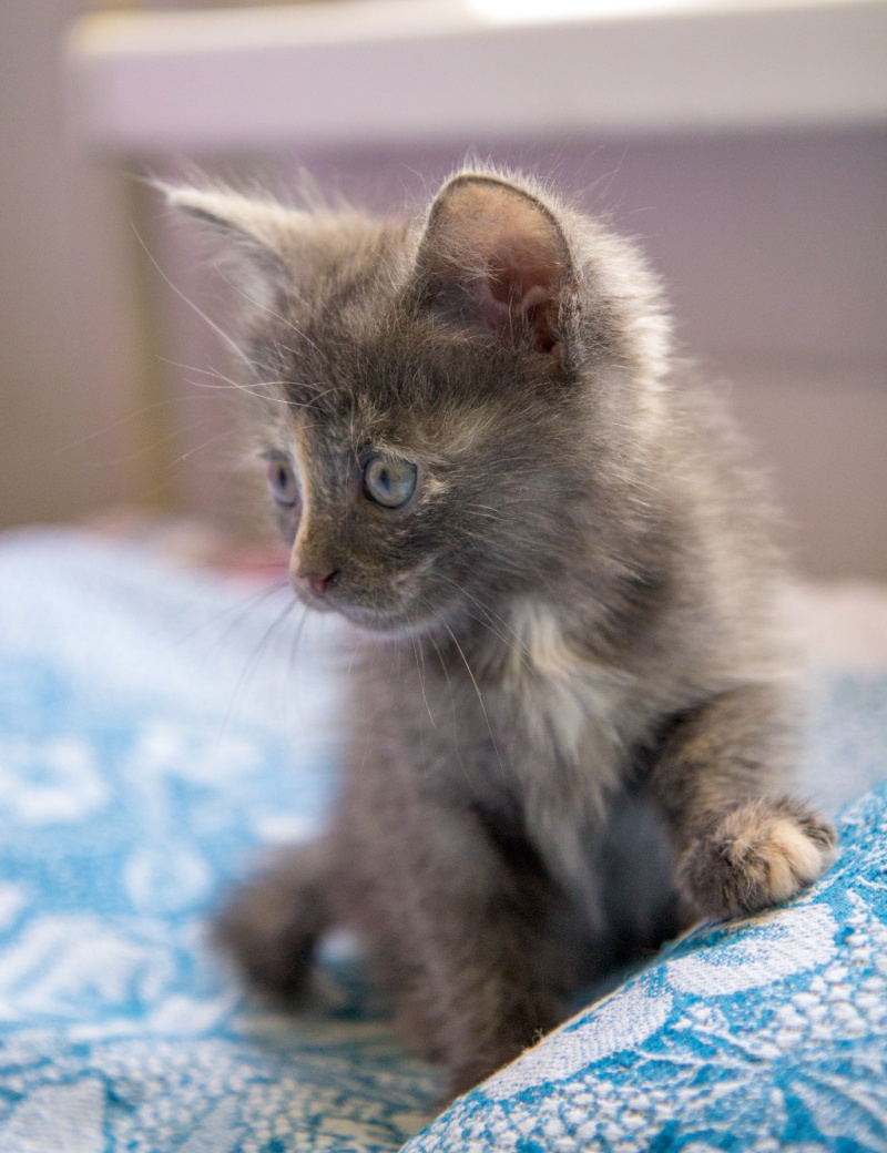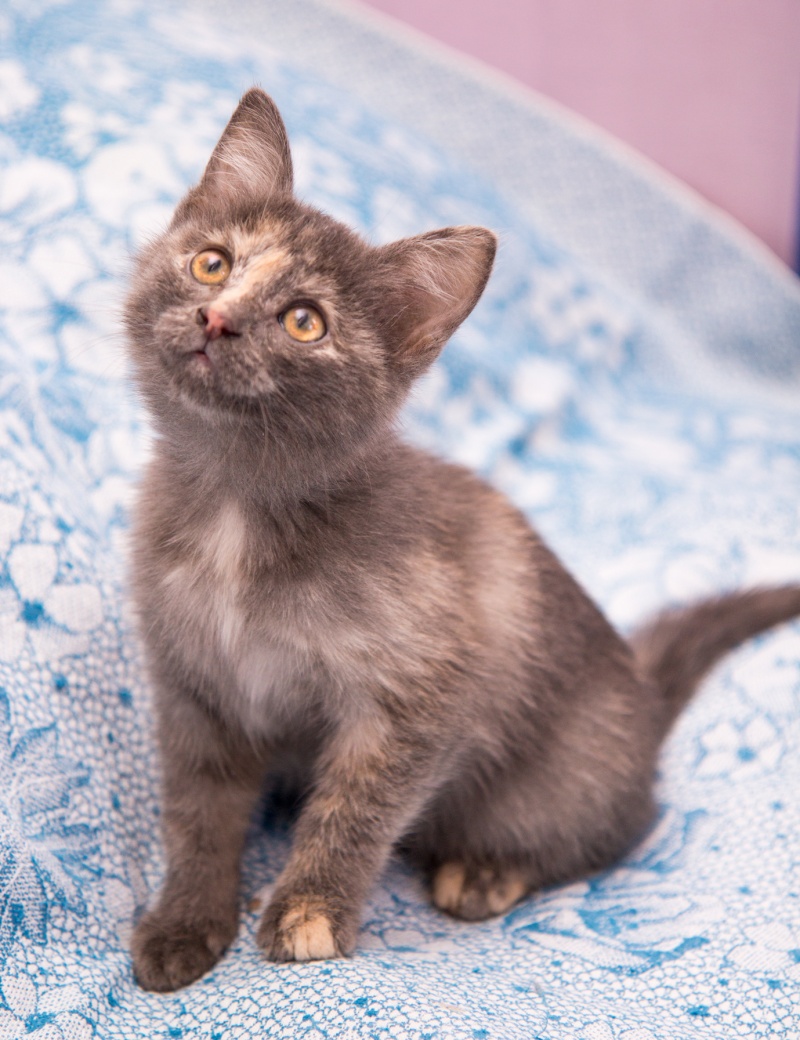 Котенок девочка примерно 1 месяц, совсем недавно нашли на улице, но сразу видно, что ребенок домашний. Сразу пошла в горшочек и нет вообще промахов. Кушать учимся, пока кушает только влажный корм, сухой корм для нее не знаком. Активная и игривая девочка, как все маленькие дети, отлично знает руки, когда ее берешь на руки начинает громко урчать. Шубка мягонькая, очень красивого голубого - кремового цвета, глазки пока не понятно какого цвета будут, но точно будут красивые! Отдается только в квартиру, с последующей стерилизацией. Не отдается в частный дом, съемное жилье и молодым людям моложе 25 лет. 8-961-845-48-35 Галина, 8-913-890-67-57 Елена