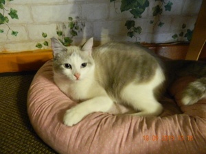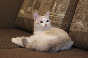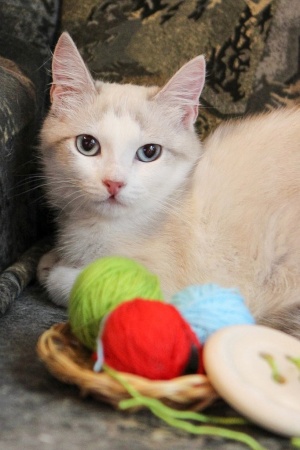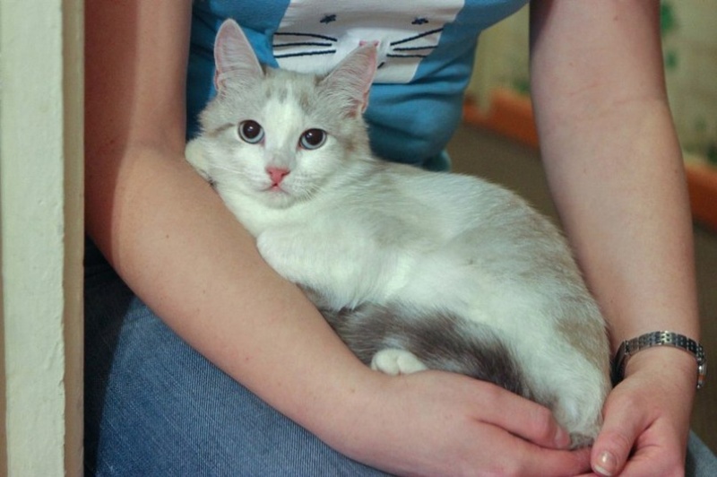 Девочке около 7ми месяцев. Является обладательницей нежно голубых глаз и окраса тэбби-поинтовый биколор.