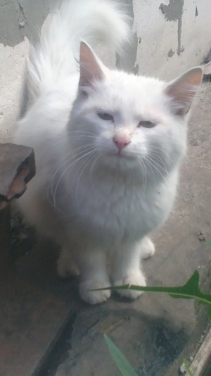 Отдам в добрые руки котенка! Приблудился в частный дом, на вид месяца 3, мальчик, чисто белый с зелеными глазами. Красивый! У меня уже четверо животных дома, к себе не могу взять, к сожалению. Пока живет во дворе, подкармливаю, но очень хочу найти ему новую семью! пока только одно фото, позже сделаю еще. В реальности у него большие, круглые, зеленые глаза.
