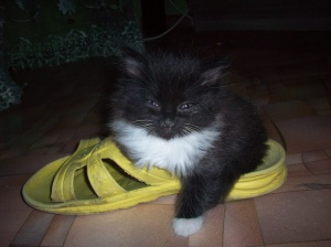 Ищет ответственного хозяина трехмесячная кошечка Майя, черная, с белыми лапками, грудкой, животиком и усиками. Активная и игривая. Не выносит одиночества. Отлично уживается с другими кошками. Обработана от блох и глистов, привита, стерилизована. Имеет ветпаспорт. Приучена к лотку и когтеточке, ест сухой и влажный корм.