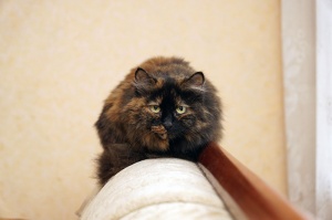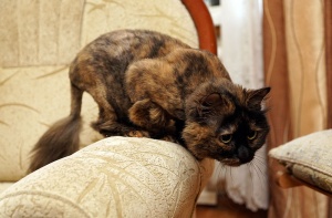 Сядет на окошко тихонько и смотрит или на стульчик. Очень незаметная.