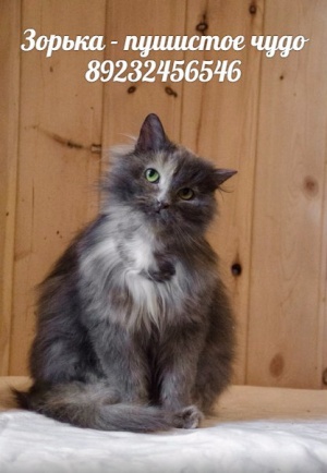 Похоже этой очаровательной кошечке пришлось многое перенести. Поступила она в приют в ужасном состоянии: испуганная, худая, с гноящимися глазами, с шерстью, висящей сосульками и большой лысиной на шее на месте выстриженных колтунов. Прошло совсем немного времени и все изменилось: глаза больше не текут, шерстка расчесана, кошка немного отъелась и привыкла. А на месте лысинки начала расти новая шерстка. Через месяц - полтора на шее Зорьки опять будет красоваться роскошный воротник. Очень милая и ласковая кошка приступает к поиску дома. Лоточек без проблем. Если вы готовы любить, кормить и расчесывать нашу красотку, звоните 89232456546. Татьяна Борисовна.