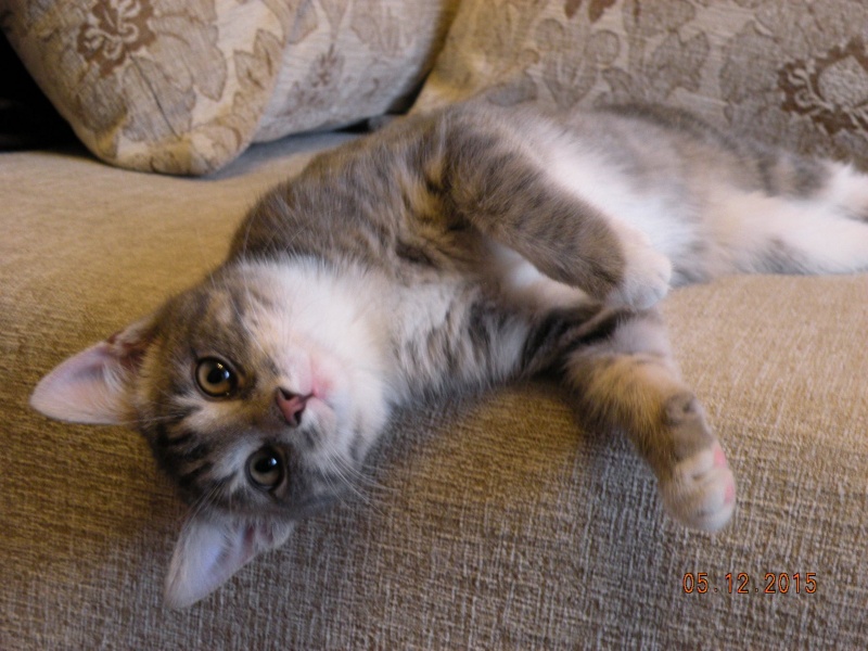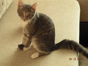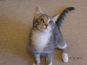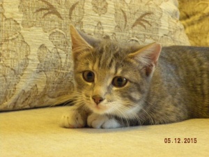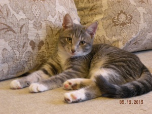 Котенок здоров, обработан, примерно 4 месяца, готовимся к прививке, в еде не привередничает, лоток в квартире нашла сама.
