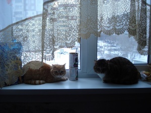 Леся на новой передержке хорошо играет с другими котами, поэтому можно брать второй кошкой в дом. На фото с бывшей соседкой по подвалу Софией, теперь вот встретились на передержке.
