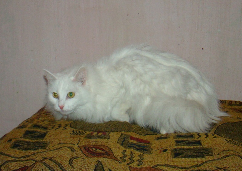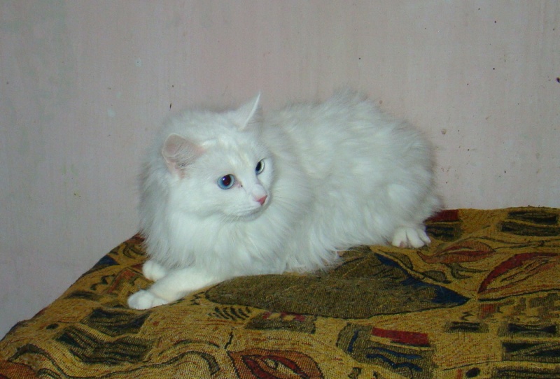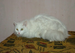 Две одинаковые кошки а-ля ангорочки: у 1й голубые глаза, у 2й - желтые