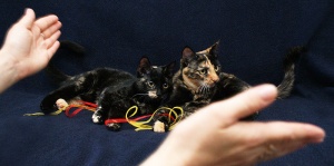 Взяли под опеку с сестричкой новенького мальчишку- котика, обучают играм.
