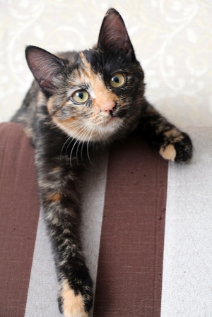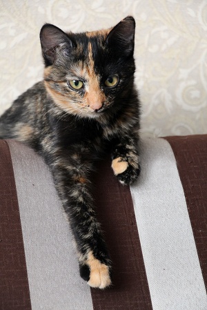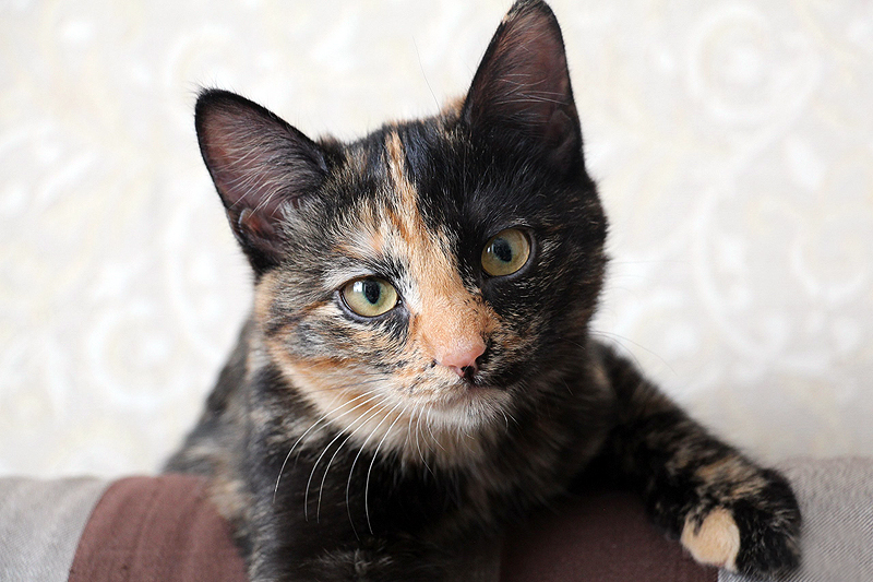 ,3.5-4 мес, ищем любящую семью. Очень яркая, с необычным окрасом, девочка. За рыжую полосочку на мордашке зовем ее между собой Морковкой или Марквой.