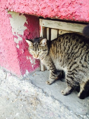 Была обнаружена в подвале одного из домов Октябрьского района,явно была домашняя,адекватная,чистая!