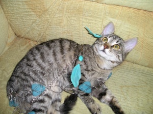 Марфа. Эта кошечка отдается любителям естественной дикой грации. Девочка с независимым характером, всегда начеку и готова в любом фантике разглядеть мишень для охоты. При этом она любит ласку, сидит и мурлычет на ручках, но при любом шорохе убегает проверять свою территорию на наличие непрошенных "гостей". Возраст около 7 мес. Стерилизована. Кушает влажный корм.
