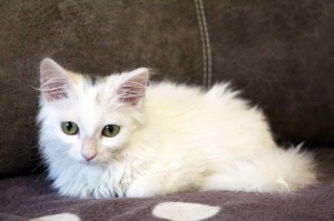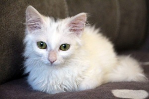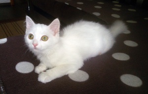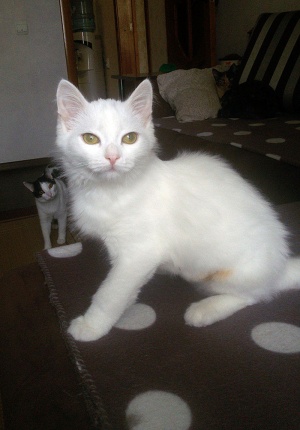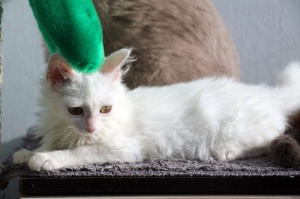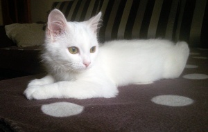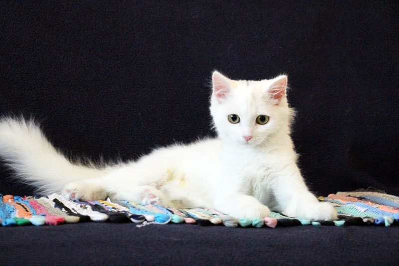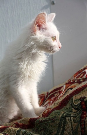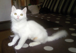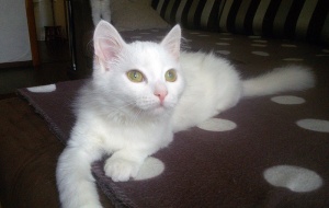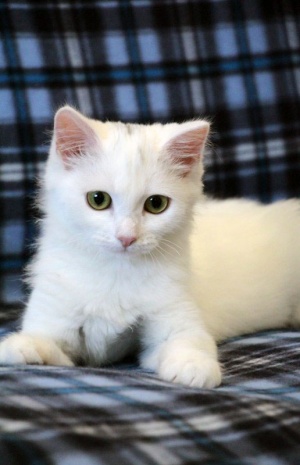 Ищет местечко в Вашем сердце светлый, лучезарный, беленький, на вид совершенно невесомый ,как первый выпавший снег, котенок Хрустик! Это маленькое создание доставит Вам много положительных эмоций, более благодарного, трепетного и нежного котика не найти. Очень дружелюбный, общительный, игривый, умеет пользоваться кошачьими принадлежностями в совершенстве. Любит когда его гладят, цепляет лапками- не отпускает, ты продолжай пожалуйста, не уходи...., еще, еще погладь:) Забавно спит на спине, растекаясь по поверхности, поджав ушки