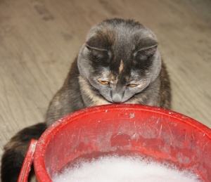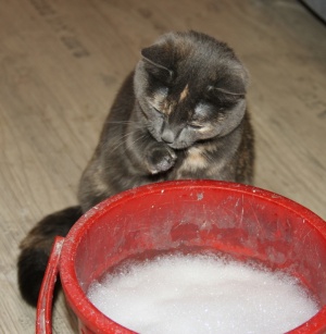 Когда я на кухне занимаюсь стряпнёй, Туся всегда рядышком. Нет-нет, она не попрошайничает, она просто составляет мне компанию, на случай, если мне скучно