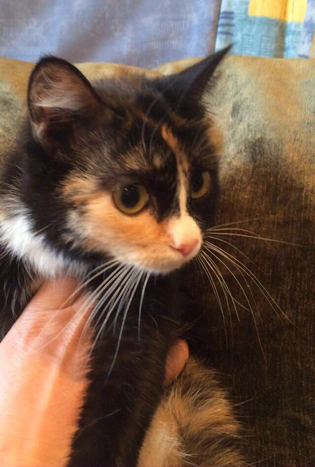 Невероятно красивая глазастая трехцветная барышня с ласковым и нежным характером по отношению к людям. Любит внимание и ласку и всегда отвечает взаимностью. Навязчивостью при этом не отличается. Молоденькая, возраст ок. 6-7 мес., здорова, стерилизована. Есть особенность: кошка, как воспитанная собака, приучена к выгулу. То есть в туалет она ходит на улицу, но в доме не гадит, терпит и дает понять хозяину, что ей нужно "по делам".