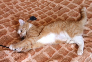 Она принесла меня к себе домой, у неё дома много-много кошек и собачка. Но я никого не боялась, потому что могла только спать, пить и кушать.