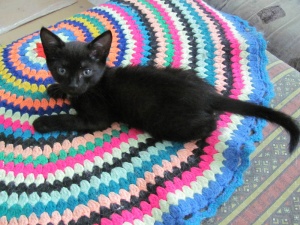 Пристраивается в надежные руки котенок (девочка). Возраст не знаю, подобран (еще голубой оттенок в глазах имеется). Размером с большого крыса, но на длинных ножках. Шилопопость в норме)) С лотком знаком (без наполнителя), но еще надо подучивать (иногда не доходит до него, до лотка то есть).