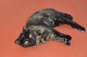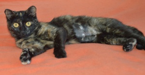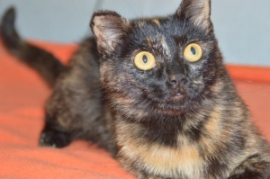 Кошка внешне не такая, чтобы :"Уххх!". Она обычная, как говорят, черепаховая или пеструшковая кошка, разве что уши после пребывания на морозе (был такой печальный период у подзащитной) стали чуть поменьше. Да, и сама она мелкая по размеру.