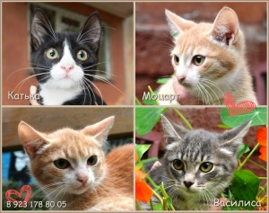 Рыжий Моцарт, черно-белая Василиска и полосатенькая серая Катька. Ребятишкам по 4 месяца, смышленые и активные котятки