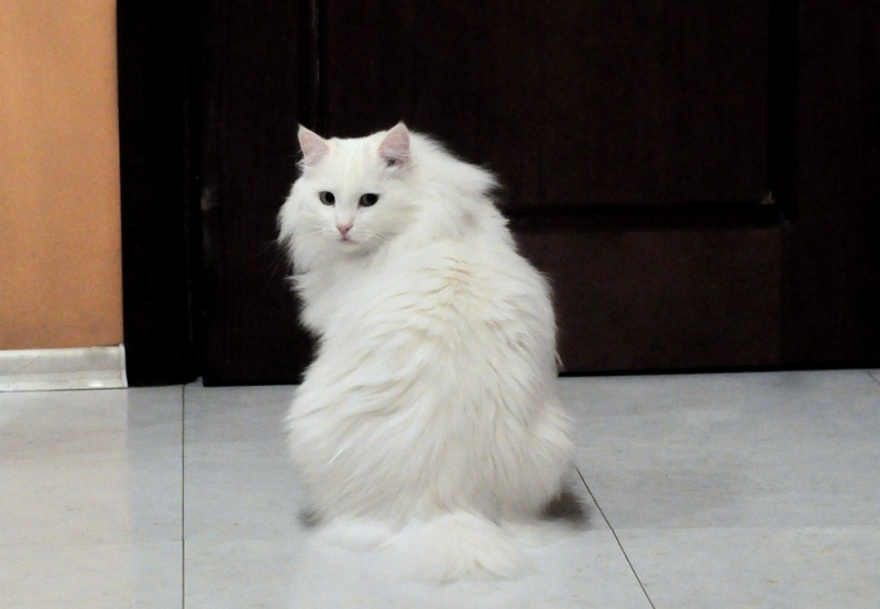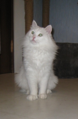 ! С огромным воротником. Котейка очень чистоплотный, за шерсткой ухаживает, постоянно намывается. У него коротенький хвостик, но не похоже, что отмороженный, скорее всего врожденная особенность.В лоток пошел сразу и ни разу не ошибся.