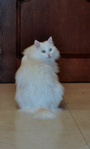 ! С огромным воротником. Котейка очень чистоплотный, за шерсткой ухаживает, постоянно намывается. У него коротенький хвостик, но не похоже, что отмороженный, скорее всего врожденная особенность.