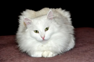 Котика подобрали в конце зимы. Тогда цвет был непонятный – серо-желтый. На худеньком тельце был панцирь из колтуна-войлока толщиной почти 2 см. Еле удалось подстричь, т.к. между войлоком и кожей даже не входило лезвие стрижечной машинки.