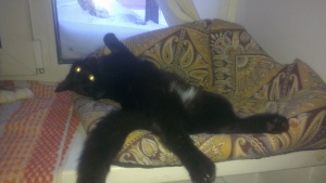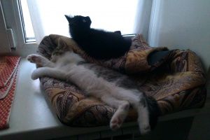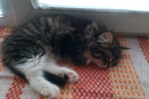 Норка - девочка, короткошерстная, темная, с белыми пятнышками на грудке и пузике, хитрюга и заводила. Первая будит меня утром с предложением позавтракать и поиграть. Укладывается только тогда спать, когда уже совсем заняться нечем и никто на неё внимания не обращает. Ласкуша и вредина - настоящая жемчужина и утонченная красавица.