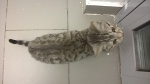 Показали ветеринару, при осмотре не выявил ни каких отклонений, сказал, что котенку 3-4 месяца – мальчик, кастрировать можно через месяц – полтора. Помыли, проглистогонили и почистили ушки =). Сразу понял для чего нужен лоток.
