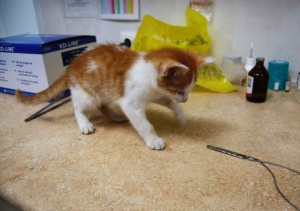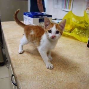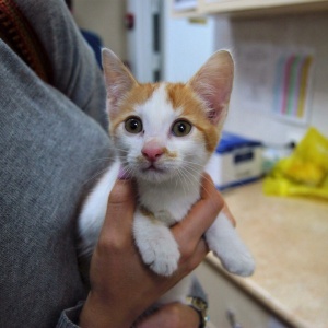 Кото-мальчик, возраст около 2х месяцев. Его очень грязного и блохастого подкинули в ветклинику, а после того как отмыли, оказалось, что это милейший, солнечный рыже-белый ребенок. Сейчас чистенький, обработан от блох и паразитов. Лоточек и когтеточку освоил на пятерку с плюсом. Очень ласковый, непрерывно мурчащий малыш, игривый и общительный. Вырастет отличным котом-компаньоном) Отдается для проживания в квартире по договору передачи животного, с обязательным условием последующей стерилизации и правом ненавязчиво интересоваться судьбой.