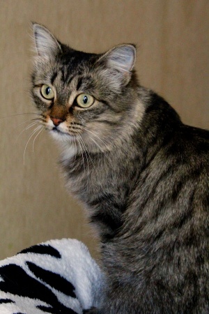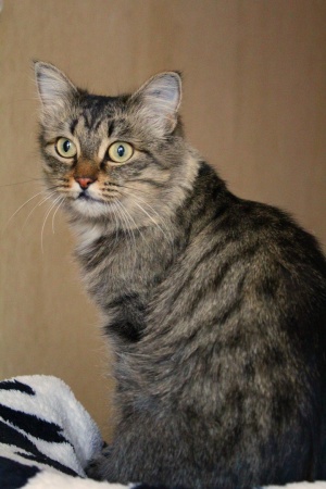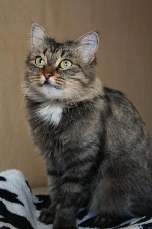 Этой молоденькой кошечке всего три года. Её пушистая шерсть привлекает взгляды и вызывает тонны умиления. Жёлто-зелёные глаза напоминают о котятах, виденных на страницах детских книжек. Общий внешний вид наводит на мысли о тихих уютных вечерах в кругу семьи. А если вы живёте одни, то с ней вам никогда не будет одиноко. Грейс очень ласковая и спокойная кошка, любит сидеть на ручках и мурчать.