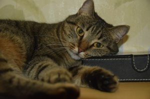 Чузла (Чузель), кошка, возраст - 4,5 года, вес – 4 кг. Окрас серый (табби-макрель), живот – бежевый. Домашняя, стерилизована. Уважает корм Вискас, не откажется от сырого мяса, любимое – курица и индейка, без ума от сыра. Есть аллергия.