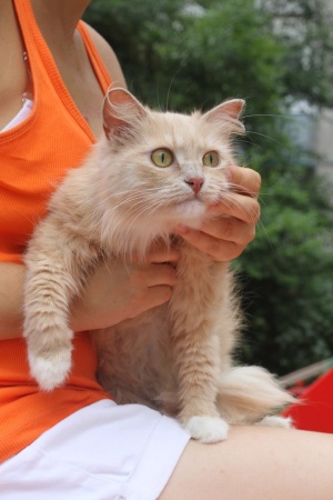 Чтобы украсить Вашу жизнь теплом и светом, Вам необходимо завести кошечку. Да не простую, а золотую, как наша девочка Аммалье. Её интересное редкое имя под стать бесподобной внешности: шёрстка нежнейшего персикового оттенка, белые перчаточки и жабо, очаровательный розовый носик и широко распахнутые медовые глаза. Характер по-настоящему кошачий - это умная, самостоятельная, но при этом общительная леди. Человек для неё очень важен и интересен, она стремится разговаривать с ним на своём языке, рассказывая невероятные истории. Однако навязываться и требовать ласки Аммалье не станет, ей достаточно простого внимания и уважения, без особых нежностей и "погладушек". В еде отдает предпочтение влажным кормам. Густая шёрстка потребует регулярного несложного ухода. Киса стерилизована, привита от бешенства и вирусов, приучена к лотку и абсолютно здорова.