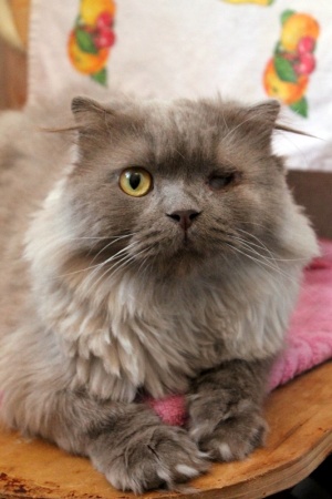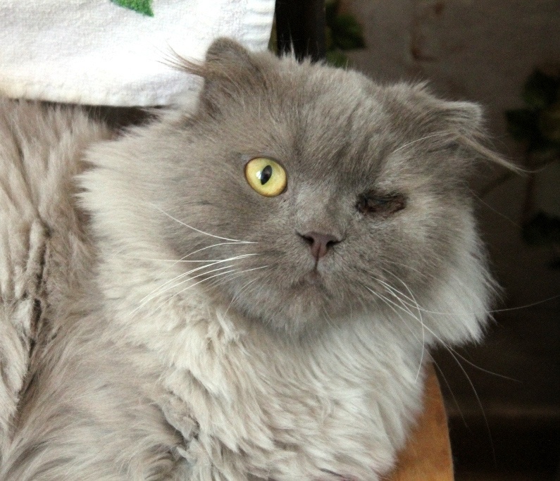 Кастрирован, к лотку приучен. Глаз потерян в неравной схватке с судьбой-злодейкой.