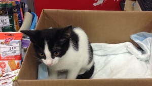 В туалет магазина подкинули котенка, девочку , на вид 3-4 месяца!