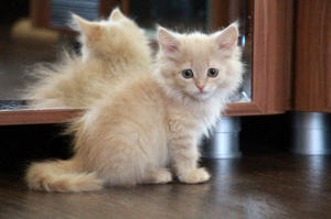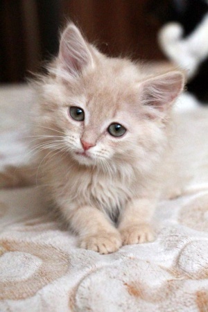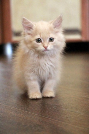 Вдумчивый и очень серьезный не смотря на свой юный возраст - 2 мес. Любит активные и развивающие игры. Настырный, настойчивый, добивается своего любым путем. Чудесный, пуховый комочек, который не хочется спускать с рук, это сплошное умиление , а не котик.