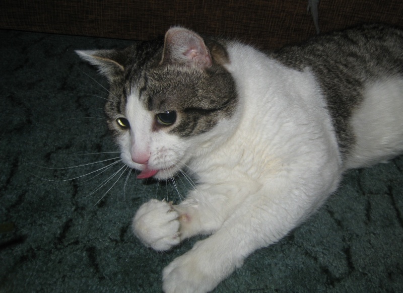 Дерет коврик у двери и когтедралку. Ходит в лоточек с бетонитовым/древесным наполнителем. Аппетит хороший. Сейчас ест сухой корм. Но, судя по всему, его раньше кормили натуралкой.
