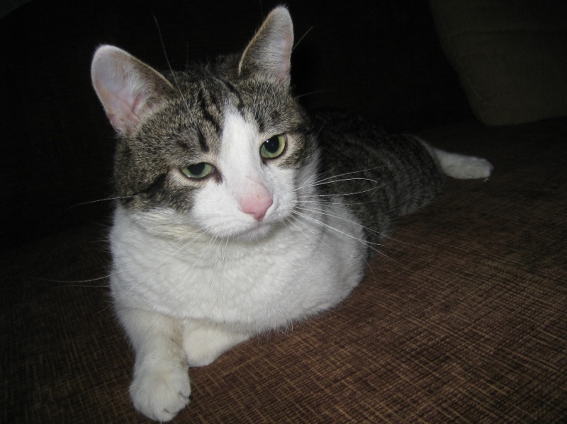 По характеру - беспроблемный. Любит побатониться на диване, помурчать, "бодает" руку и подставляется чтобы его гладили. Играет с махалочкой.