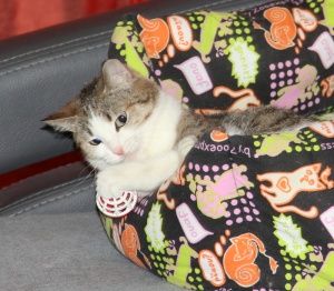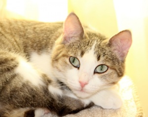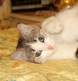 Очень нежная, контактная кошечка. Любит прилечь рядышком и помурчать.